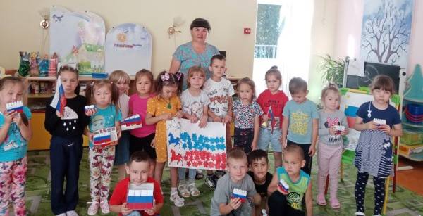 Флаг Российской Федерации имеет свой собственный праздник – его отмечают 22 августа. В этот день в детском саду «Снегурочка» прошли ряд мероприятий, посвящённых этой дате. В тематической беседе «День флага» ребята узнали об истории появления Российского флага и его значимости для нашего государства. Всем понравились игры «Собери флаг по цвету», «Узнай флаг». В продуктивной деятельности воспитанники изготовили различные варианты триколора: складывали из цветных кубиков, крышек, конструкторов, выполнили коллективную аппликацию. На прогулке провели флешмоб.
