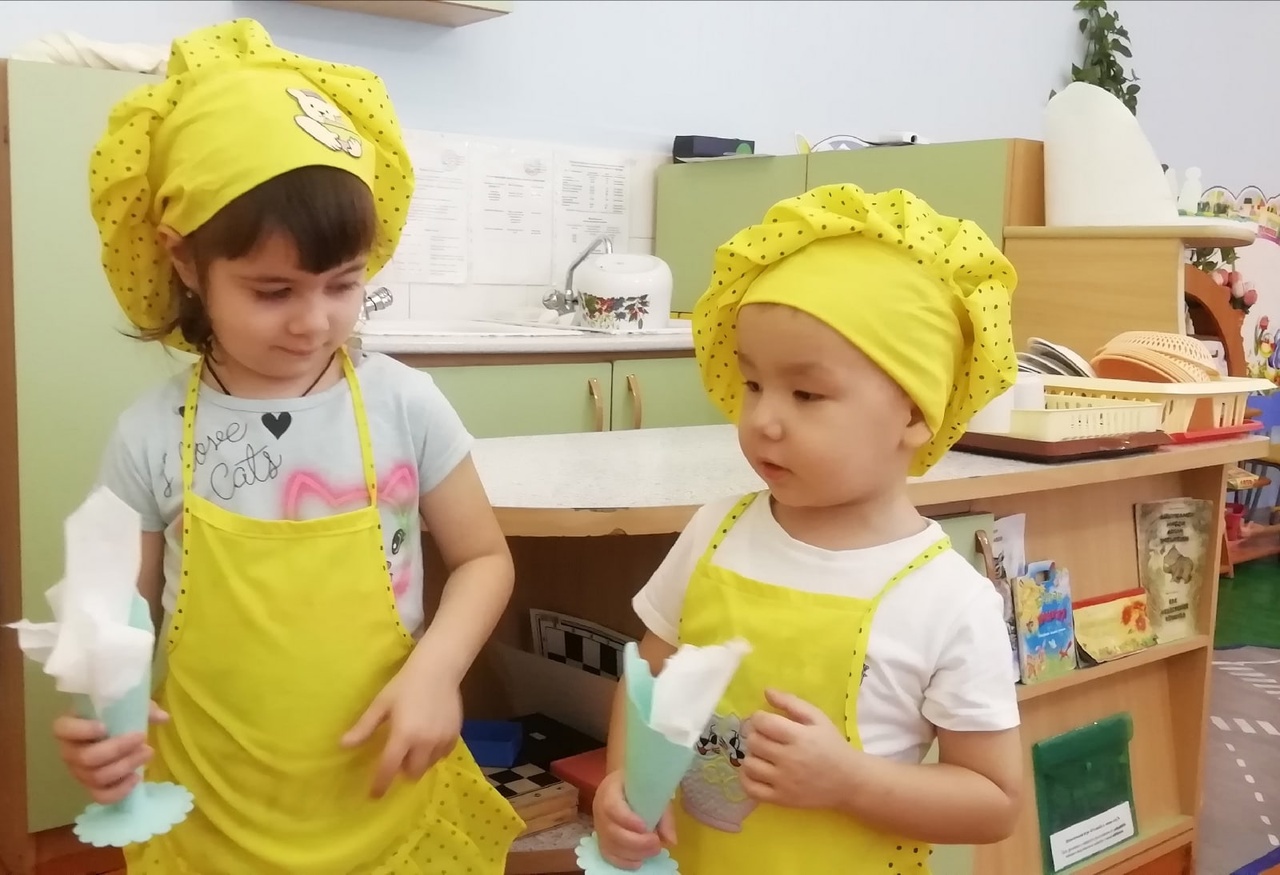 Дети группы "Ромашка" присоединяются к акции "Спасибо нашим поварам". Ребята познакомились с профессией повара, беседовали о важности профессии, играли в маленьких поварят, одевали во время дежурства специальную одежду, читали стихи, играли в кафе. Вместе с родителями дома нарисовали любимое блюдо.