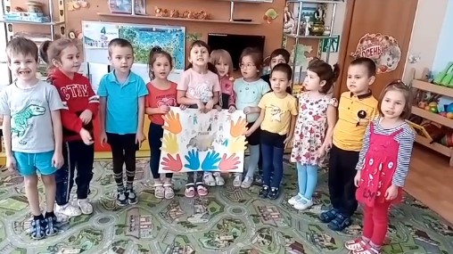 Воспитанники группы "Радуга" детского сада "Снегурочка" присоединяются к флешмобу "Когда народ един, он непобедим!"