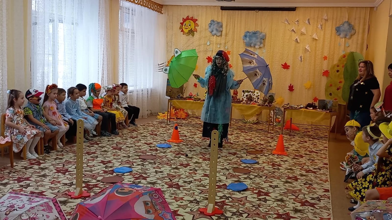 На празднике дети пели песни, исполняли танцы, играли в веселые игры, рассказывали стихи. На "Осеннюю дискотеку" пришла крутая диджей Золотая осень. Так же на праздник пожаловала госпожа Холодрыга. Праздник удался на славу. Воспитанники получили много позитивных эмоций и закрепили знания по теме "Осень".