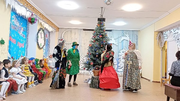 В группе "Радуга" утренник по мотивам русской народной сказки "Морозко".