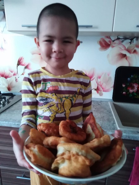 Воспитанники группы "Радуга" МДОБУ д/с " Снегурочка", Ахметов Азат и Ажигалиева Аэлита присоединяются к республиканской акции "Моё национальное блюдо".