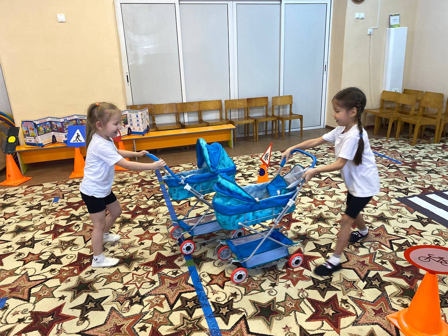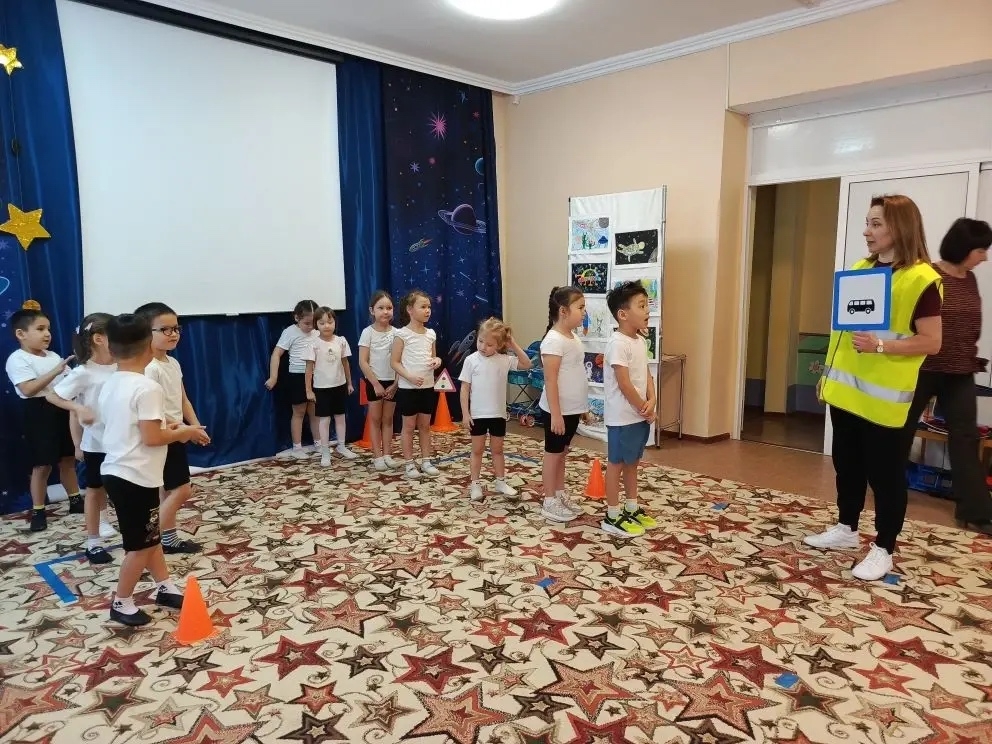 Занятие прошло в форме развлечения в виде эстафеты, где дети в игровой, непринужденной обстановке выполнили задания и закрепили знания по ПДД.