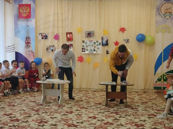 14 октября прошёл праздник "Папа может всё!" с приглашением пап и дедушек. Дети выразили почтение и уважение к папам через песни, стихи, танцы. Ребята поддерживали пап во время конкурсов, сами с удовольствием участвовали в соревнованиях с папами. Папы рассказали детям о своих профессиях. В завершении праздника ребята подарили папам подарки, сделанные своими руками.