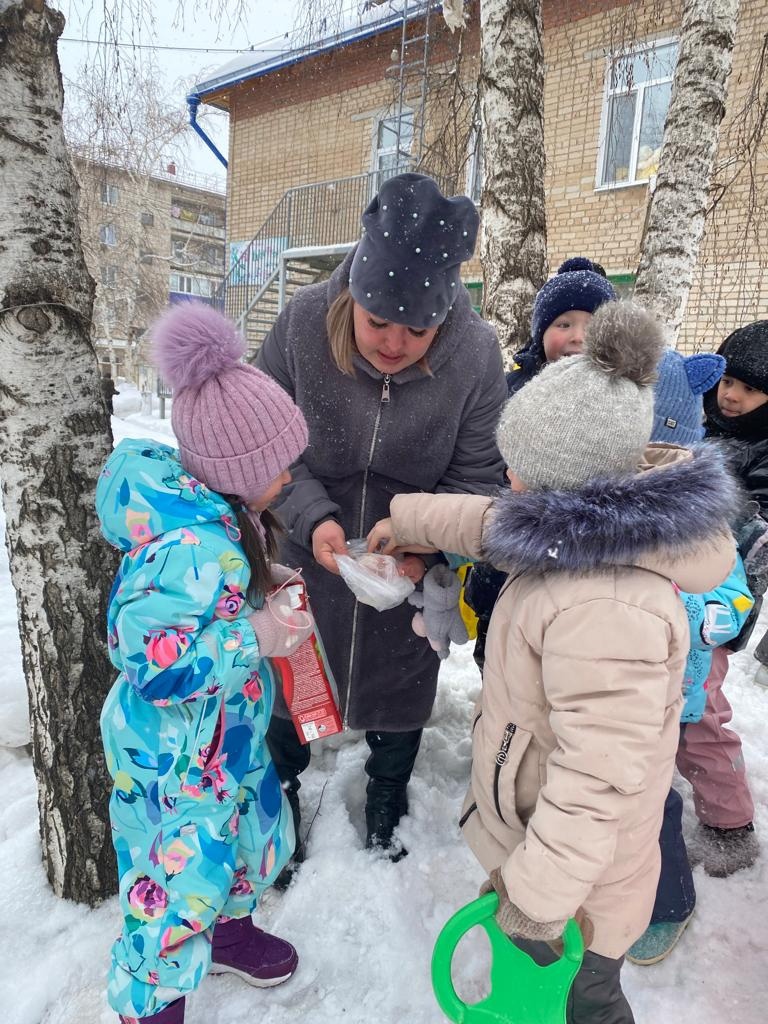 Подготовительная к школе группа д/с "Снегурочка" приняла участие в уже ставшем традиционном зимнем подкорме птиц, который объединяет детей, родителей, педагогов в желании оказать помощь маленьким пернатым собратьям в зимнее время года, и привлечь внимание всех вокруг к бережному и доброму отношению людей к природе.