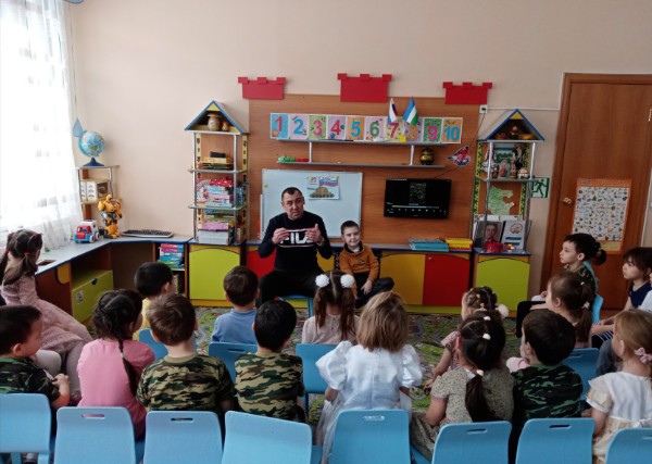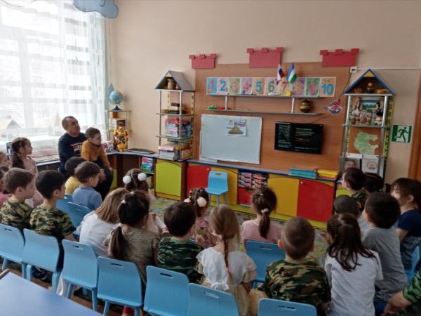 21 февраля 2023 года в преддверии празднования Дня Защитника Отечества и в рамках месячника "Нравственно-патриотического воспитания дошкольников" в группе "Радуга" состоялась встреча с участником СВО, отцом воспитанника нашей группы Абдюкаевым Р. Х., который защищает интересы Российской Федерации в составе одного из батальонов, сформированных в РБ. Встреча получилась тёплая и очень душевная.