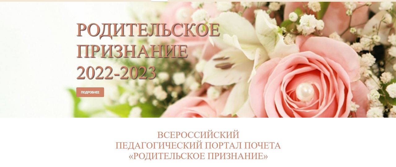 2023 год объявлен Годом педагога и наставника в России. С 15 января по 15 мая 2023 года каждому из Вас предоставлено право лично представить на Всероссийский педагогический портал почета «Родительское признание» кандидатуру педагога, достойного, по Вашему мнению, почетного статуса «Родительское признание». Вы также можете написАть теплые слова и сказать «Спасибо» любому достойному педагогу в разделе «Благодарность» (это полностью бесплатно).